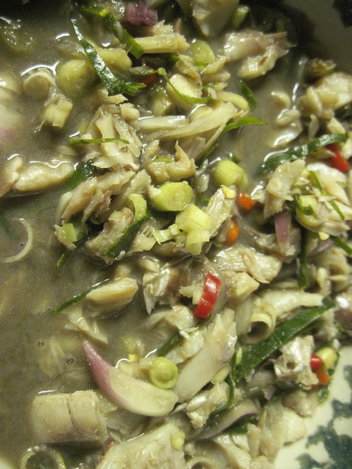 ห่างหายไปหลายนานหลายเดือน วันนี้เลยต้องเอาของแซบๆ มายั่วน้ำลายก่อน แต่ไม่รู้เพื่อนๆ จะรู้จักกันไหมเพราะมันเป็นอาหารทางใต้ ที่เอาน้ำบูดูมาต้มให้สุกแล้วใส่ปลาย่าง พริก ตะไคร้ หอมแดง ใบมะกรูด ปรุงรสเปรี้ยวหวาน เค็ม ตามชอบใจ แต่น้ำบูดูเค็มอยู่แล้วดังนั้นต้องระวังเวลาปรุงรส ใช้กินกับผักลวก หรือไม่ก็ผักสด