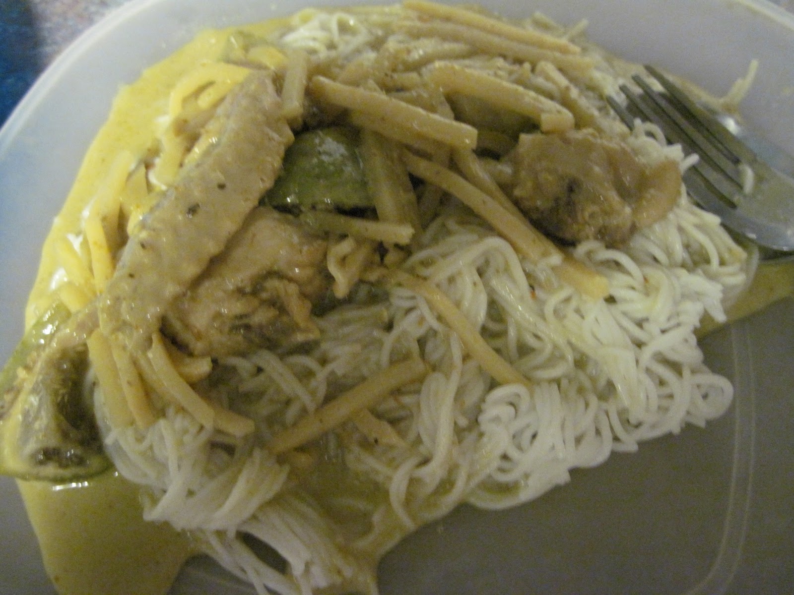 กินขนมจีนแต่ขาดผักคู่ แต่เอาแค่นี้ก่อนเพราะถ้าต้องไปหาผักมาคู่ด้วยแล้วสงสัยว่าวันนี้ก็ไม่ได้กิน :)