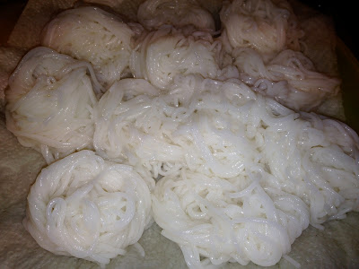 อยากกินขนมจีนตลอดไม่รู้เป็นอะไร วันก่อนเพื่อนก็ทำมาให้กินอร่อยมาก แต่มันยังไม่หนำใจผ่านมาสักอาทิตย์กว่าเลยขอทำเองมั้ง จะเอาไปให้เพื่อนชิมดูก็กลัวเพราะว่ารสชาติยังขาดๆ เกินๆ พิกลไม่เหมือนเขาทำสักเท่าไหร่ รื้อๆ อุปกรณ์ในบ้านมีปลานิลแบบแล่แล้วนอนแข็งอยู่สองชิ้น กับลูกชิ้นเนื้อกับหมูที่ซื้อมาหลายวันก่อน ก็เลยถือโอกาสทำเสียเลย