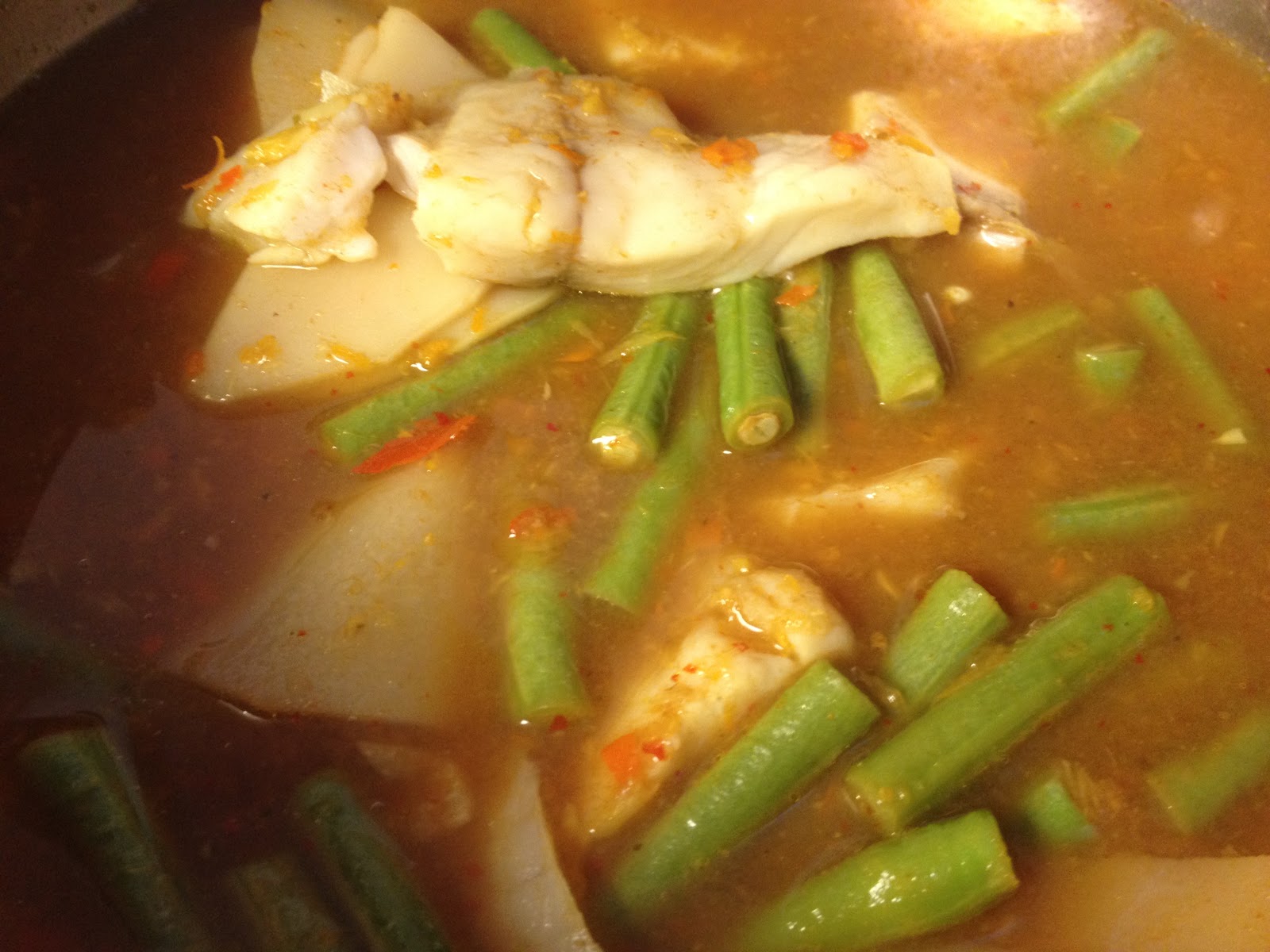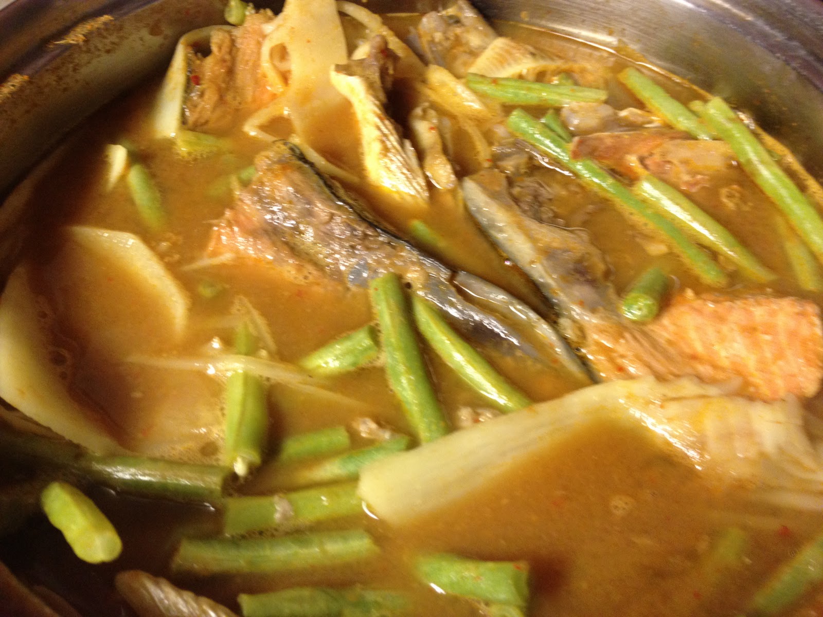 แกงส้มหัวปลาแซลมอนกับหน่อไม้ดอง แอบใส่ถั่วฝักยาวไปด้วย